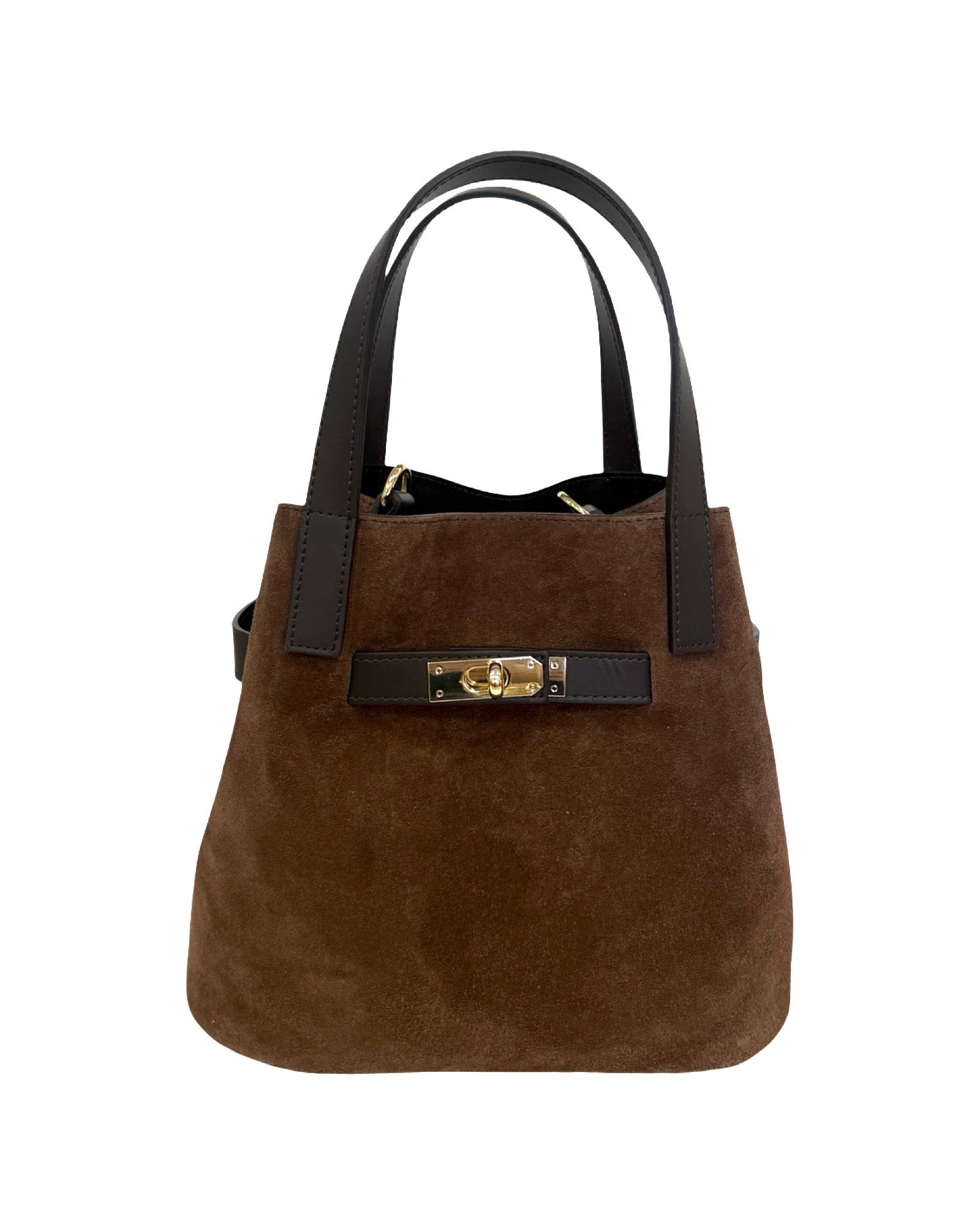 Opplev ekte italiensk eleganse med Alba, en håndveske laget i 100% italiensk skinn. Den myke, semskede overflaten i den varme og dype fargen testamoro kombineres med solide håndtak i glatt skinn for et utrykk som er raffinert og moderne.
