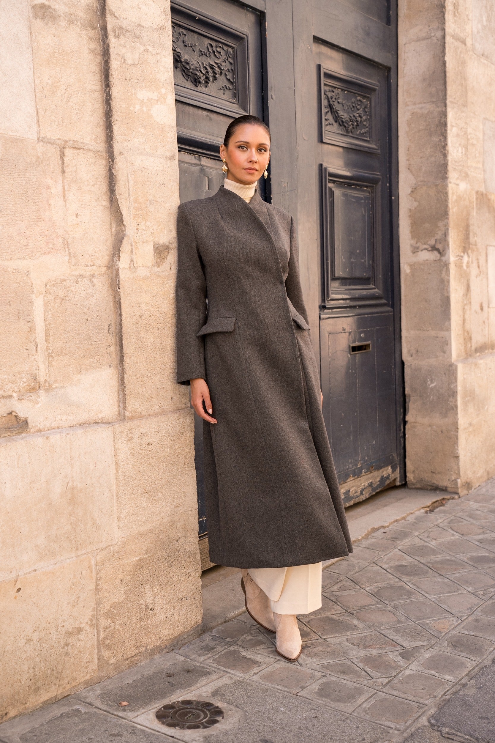 Denne nydelige kåpen i 50% ull med innsving i livet er den perfekte kåpen som gir det lille ekstra til outfiten. Den kan styles på ulike måter som gir den unike utrykk.